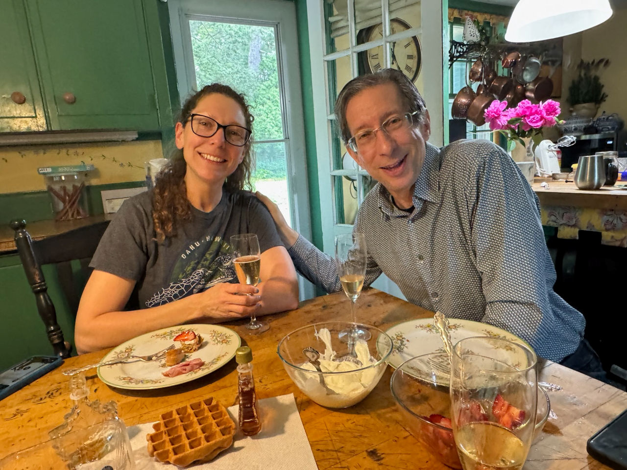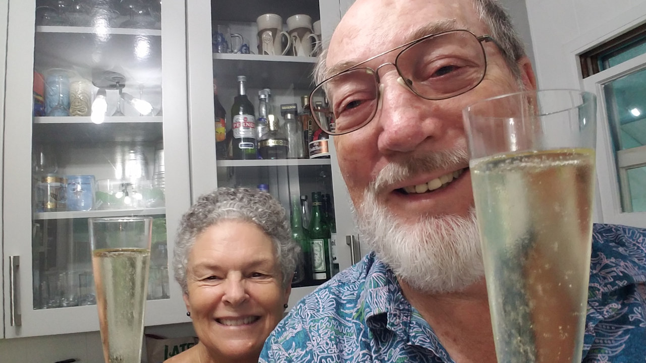 Our planned barbecue got rained out but we had the birthday bubbly.