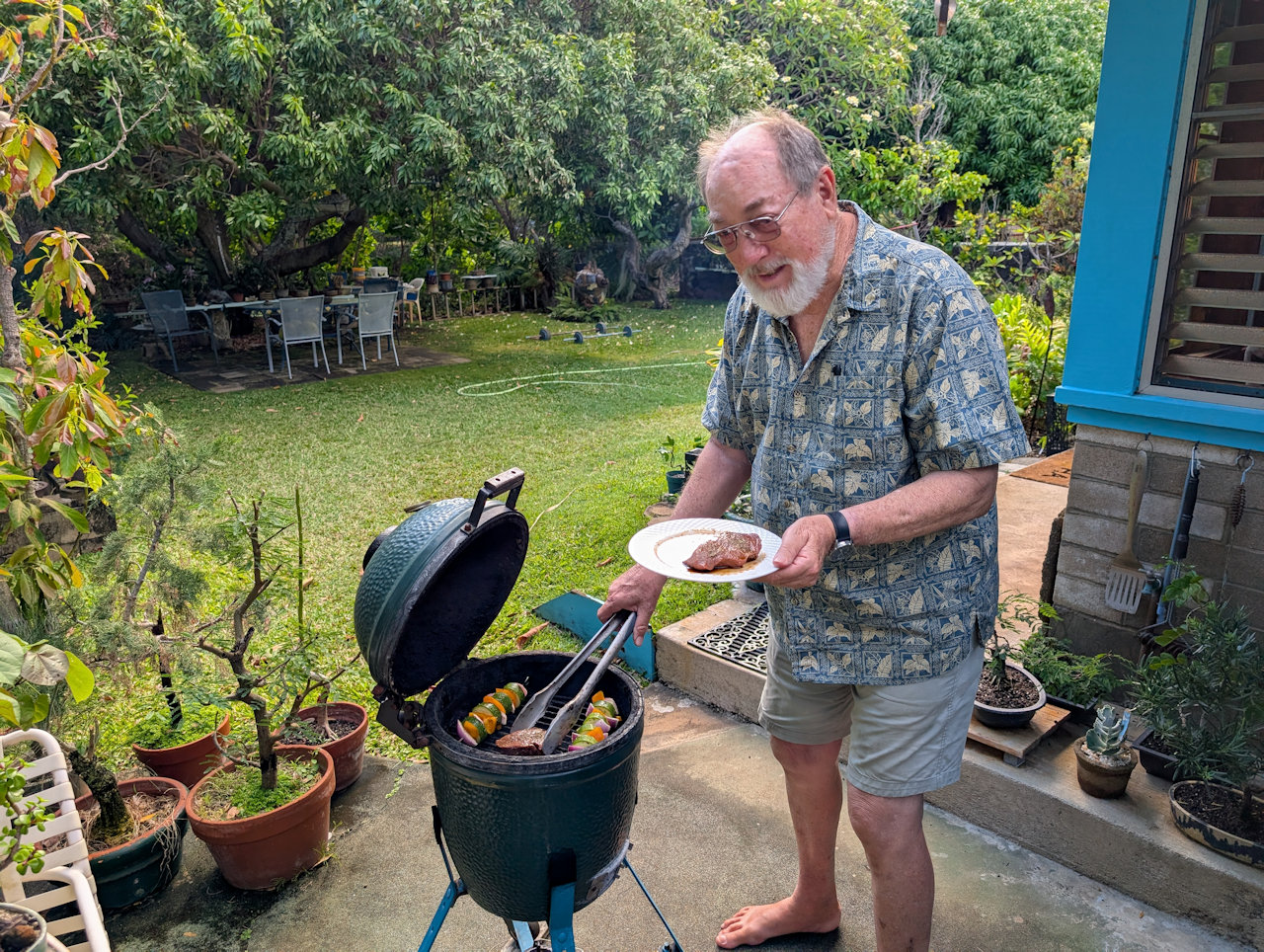 We had seating for 30 outdoors, including the two bamboo benches.