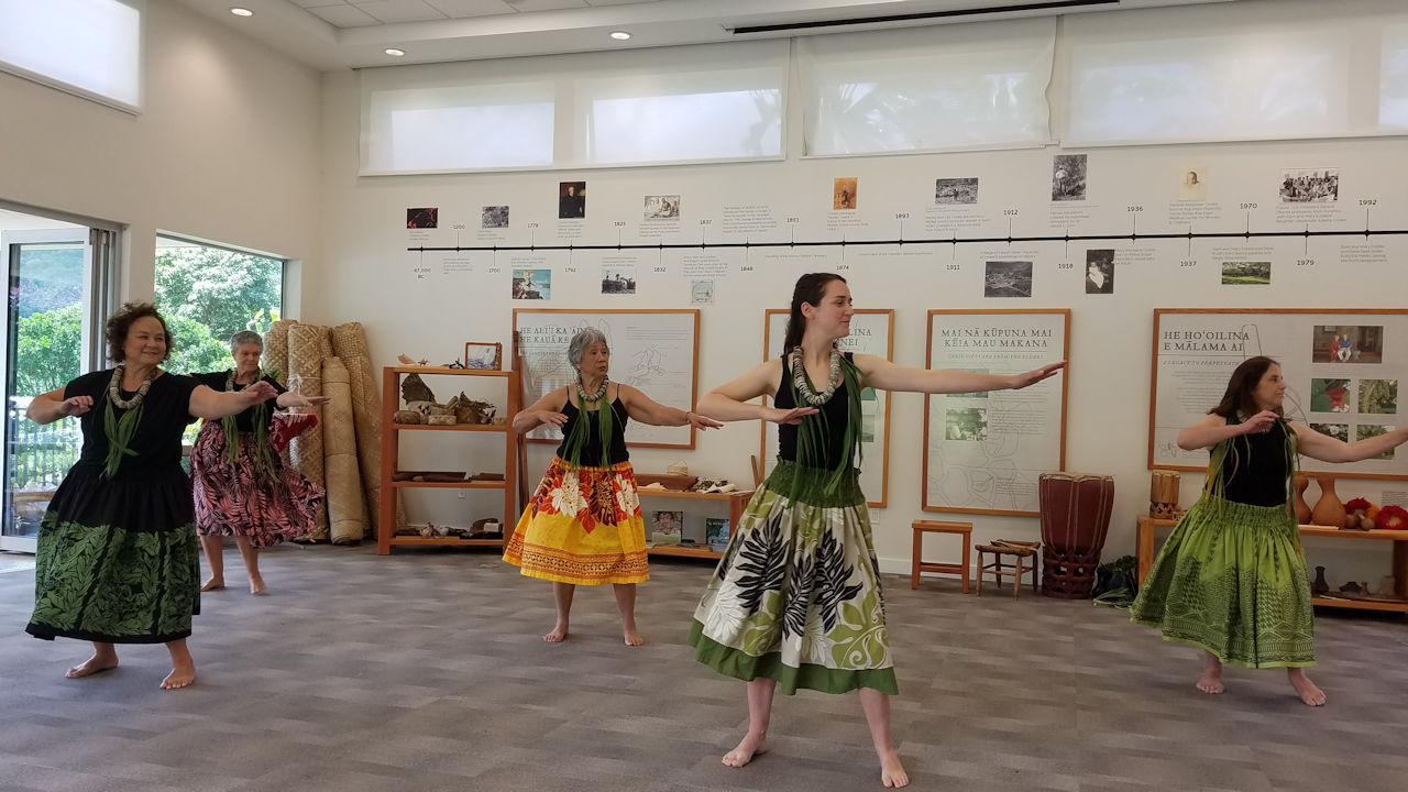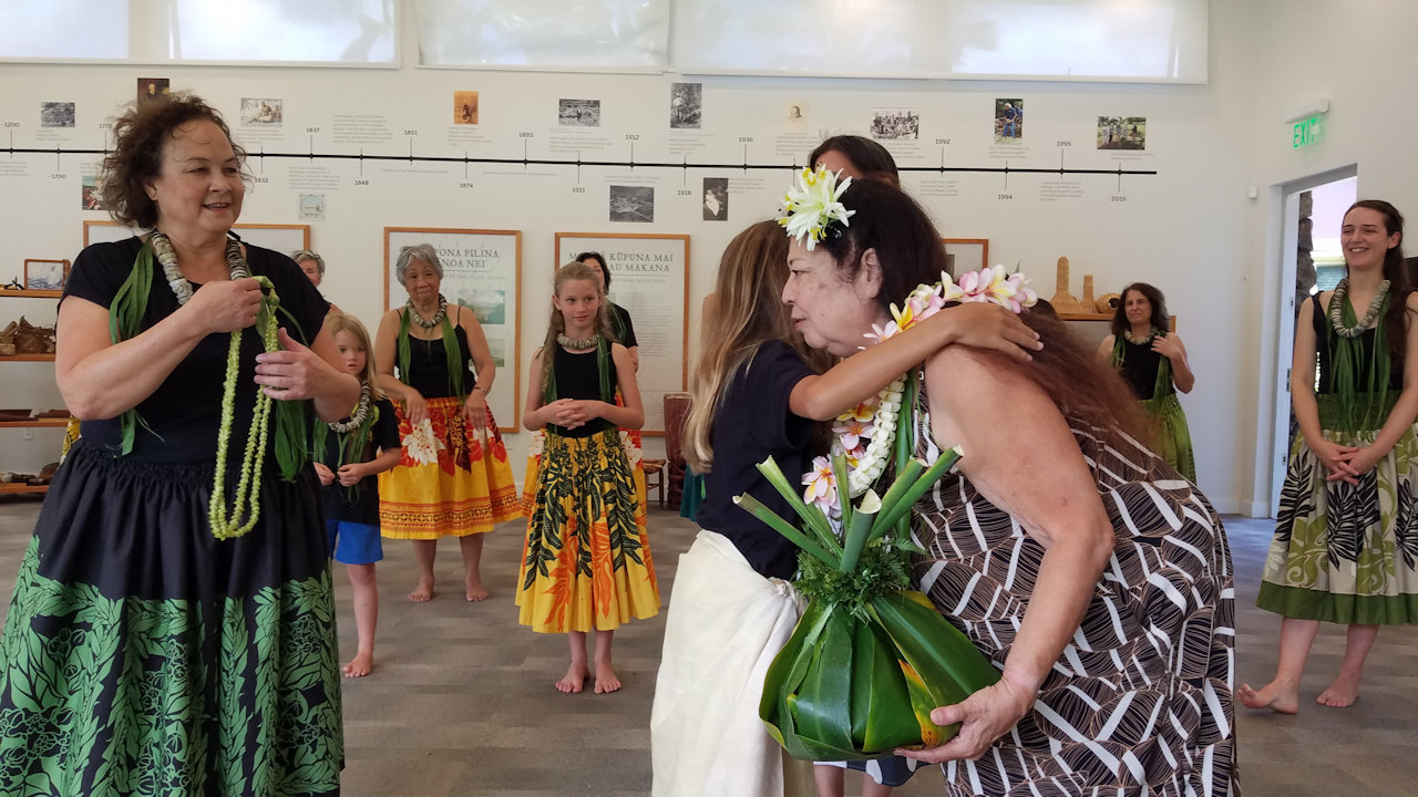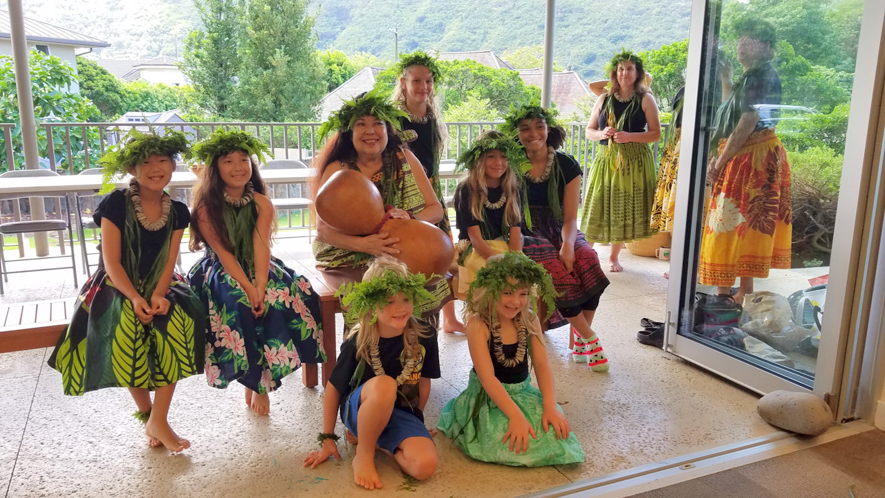 Andrea received several birthday lei from her hula sisters at the halau practice today.