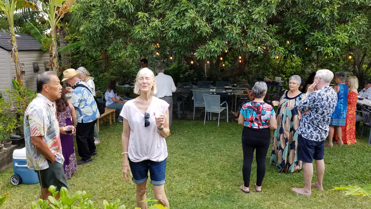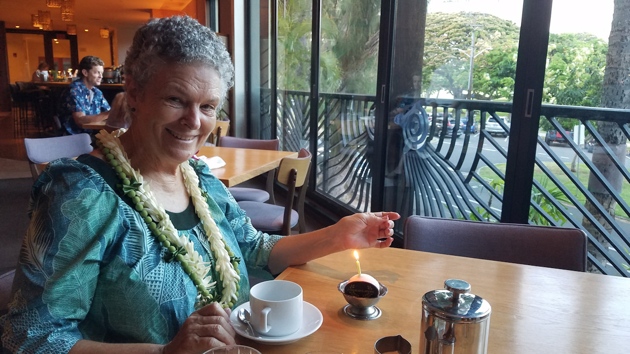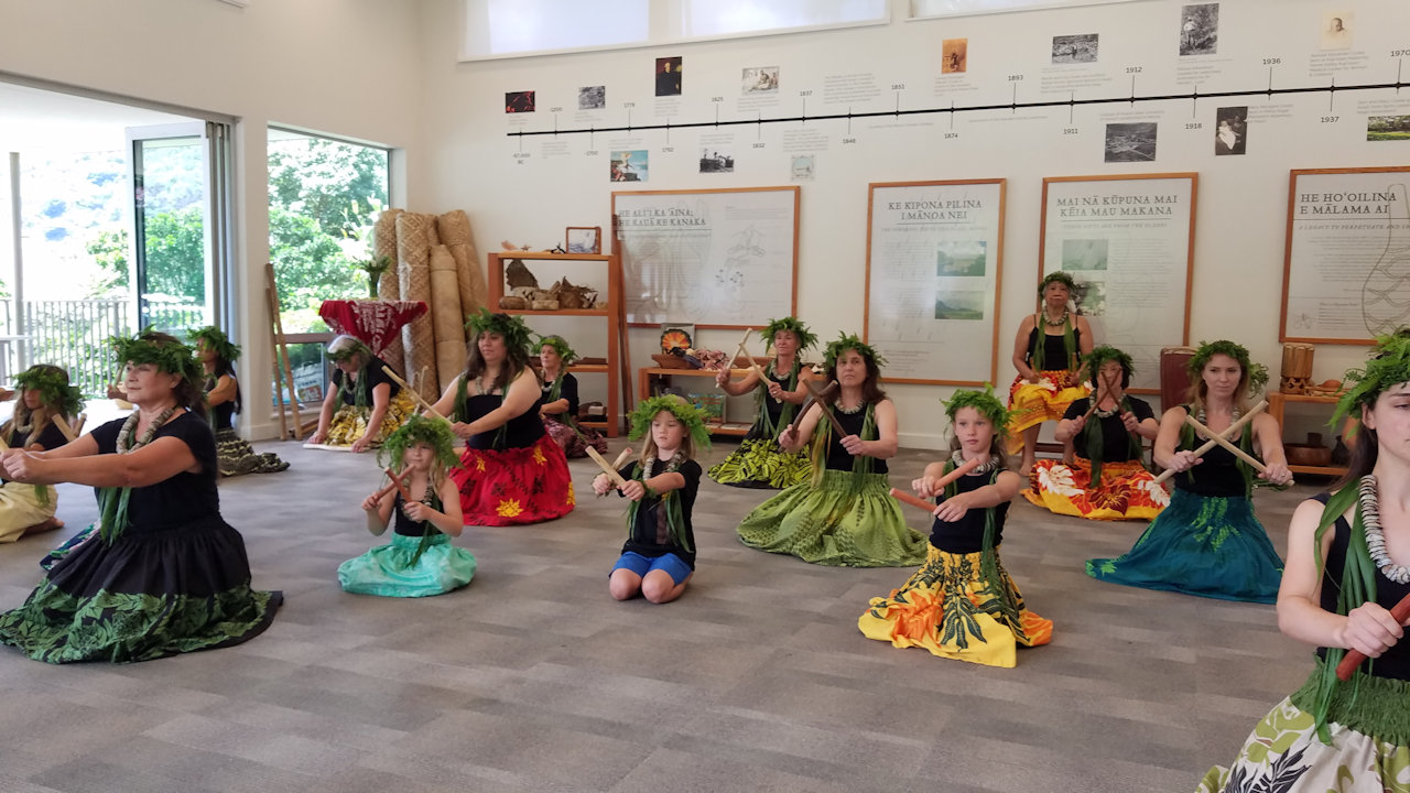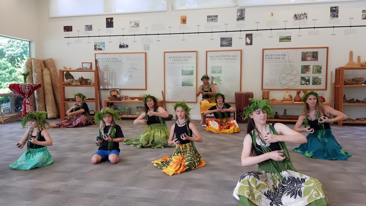 Andrea received several birthday lei from her hula sisters at the halau practice today.