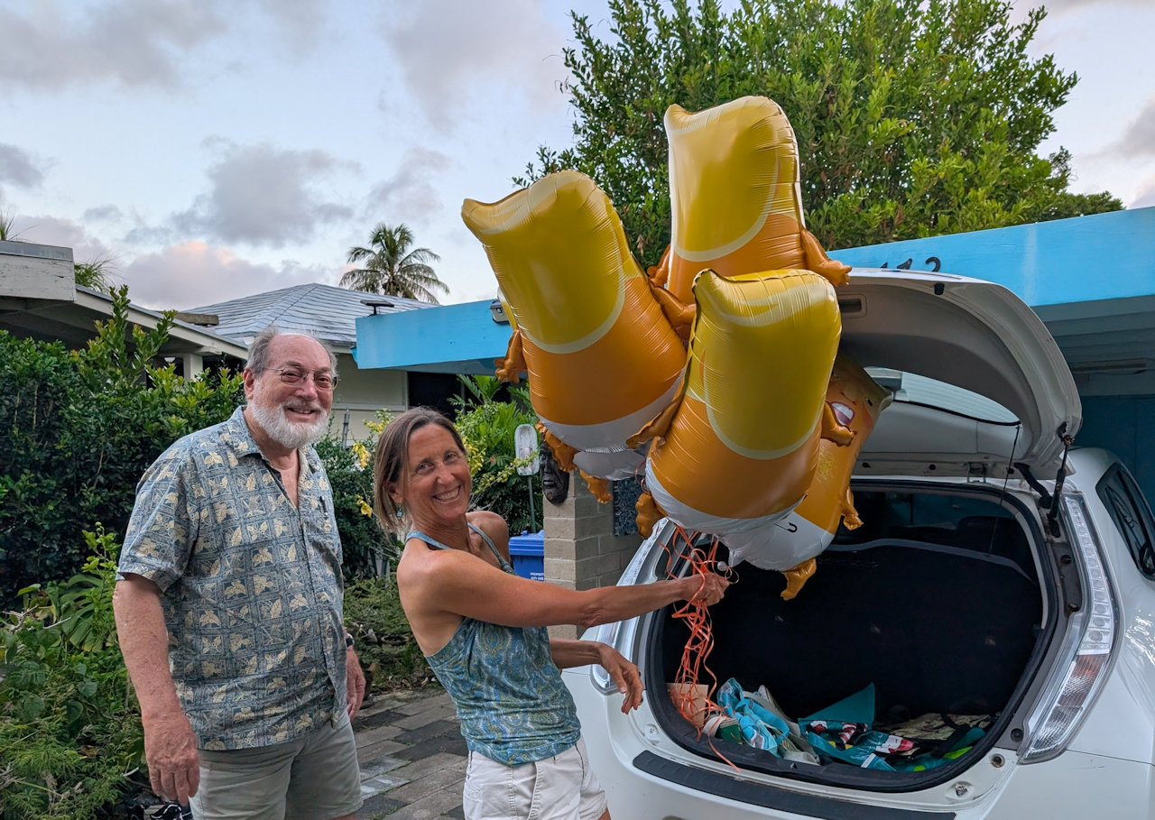 We were able to get six baby Dopey Donny balloons into the back of the Leaf.
