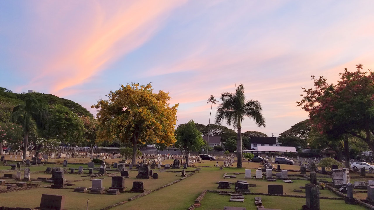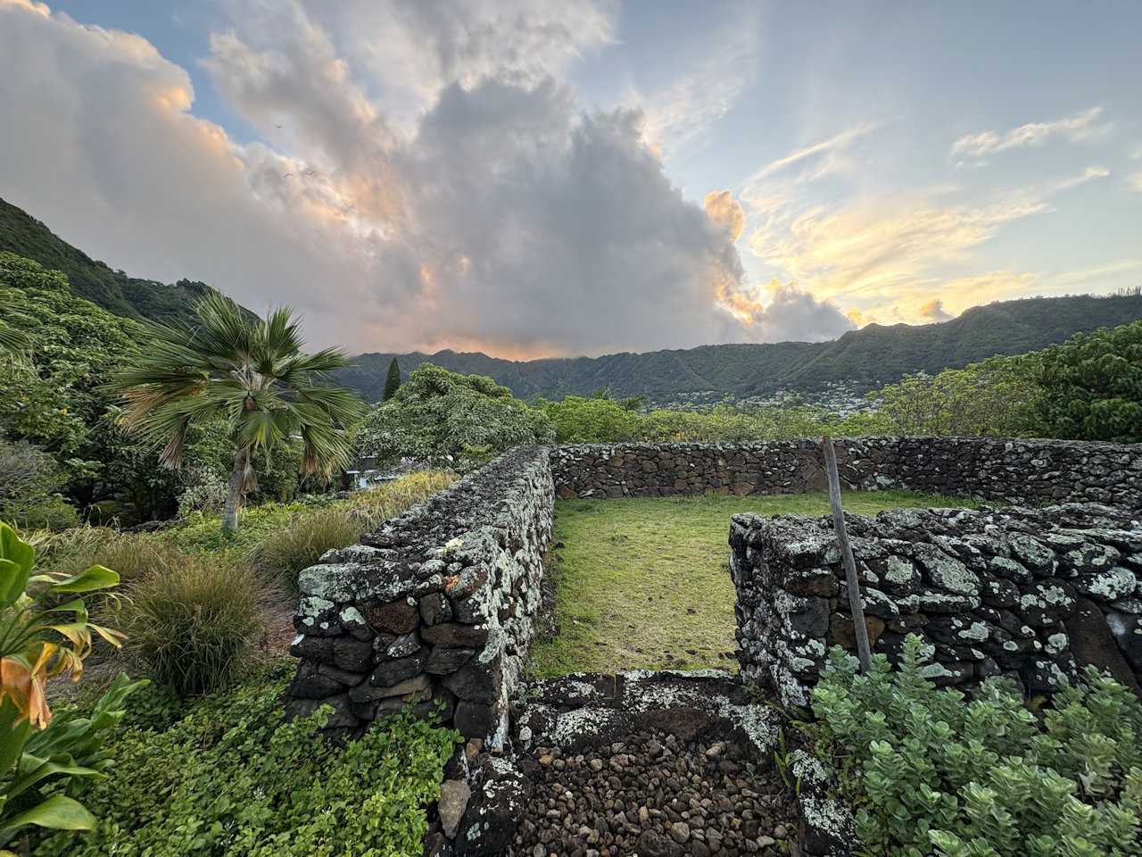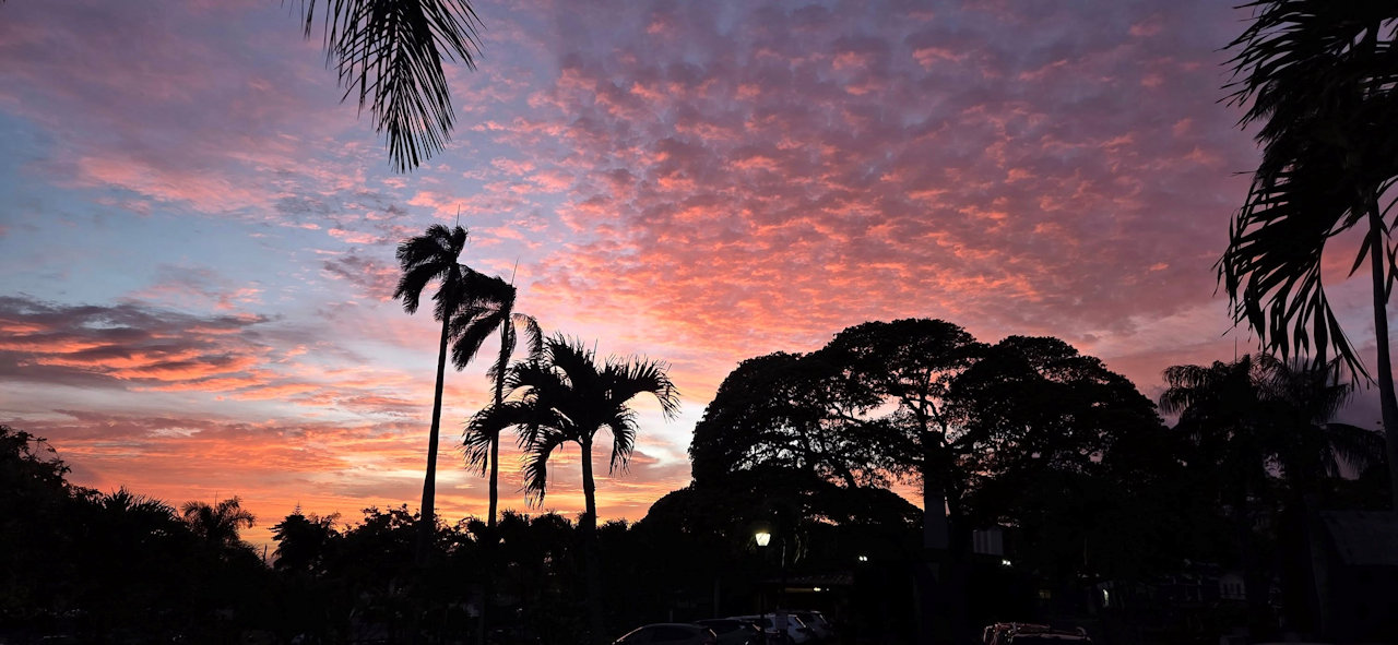 Solstice sunset at the Mānoa Heritage Center, photo sent by Keala.