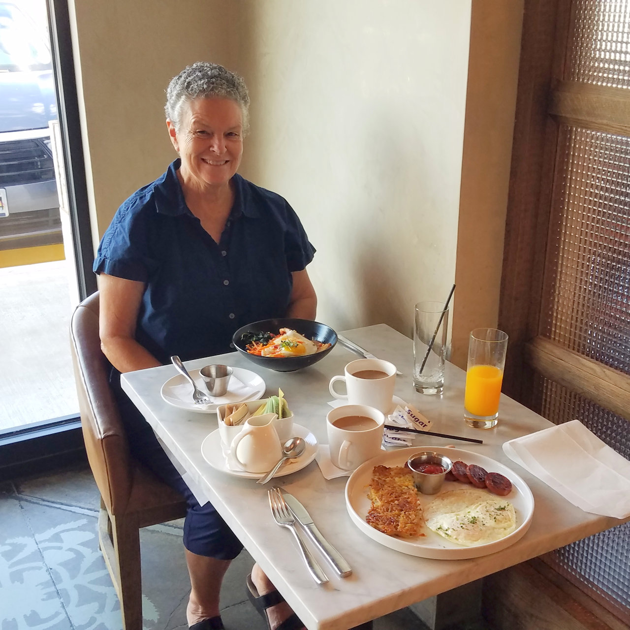 Andrea had the breakfast bowl with pork bellies while I had the two eggs over with Portuguese sausage. The hash browns were ulu.