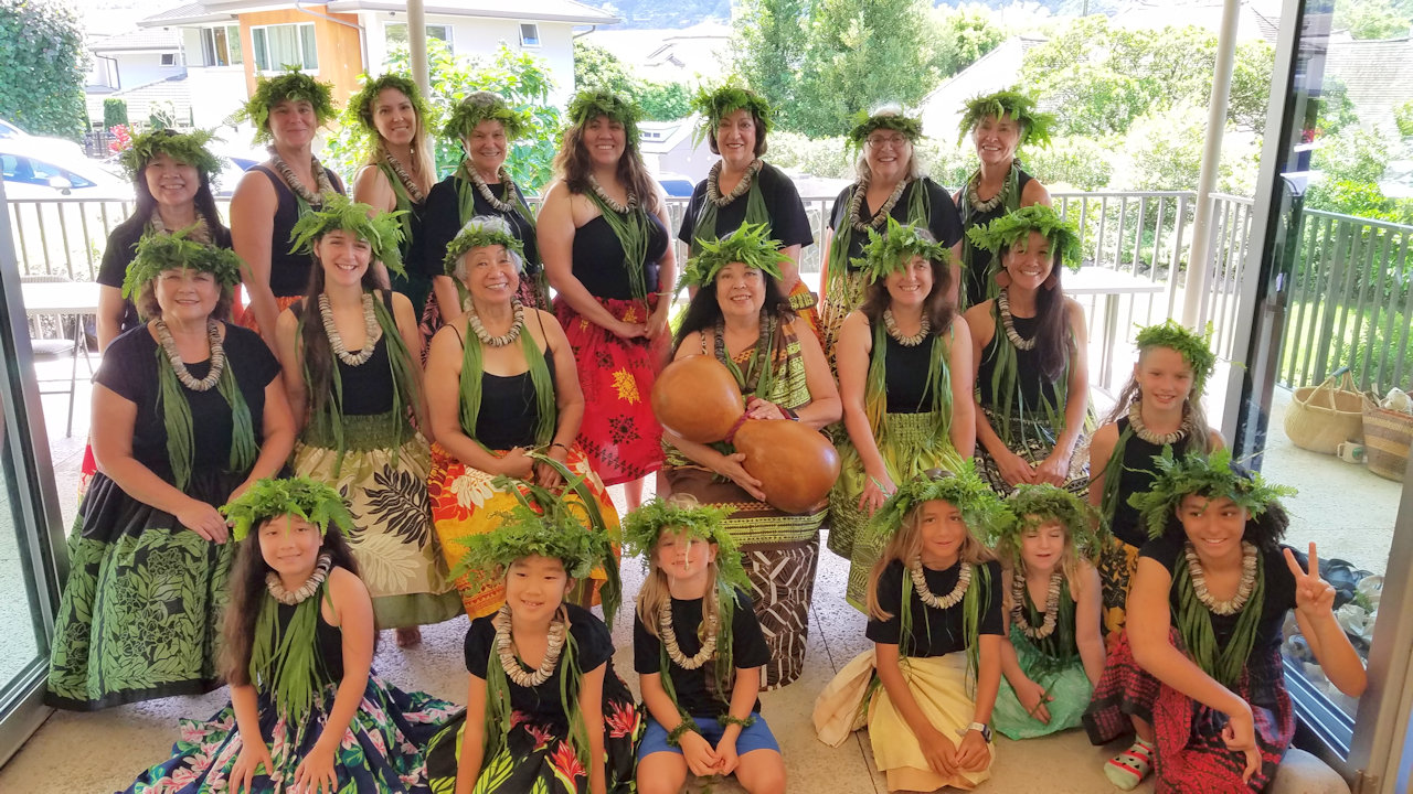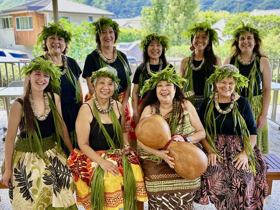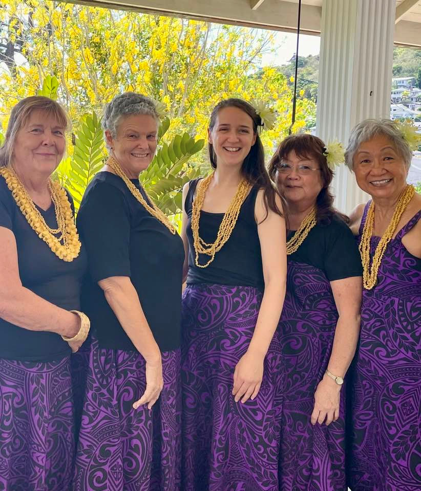 Andrea with her halau in the afternoon after dancing at Beckwith care home.