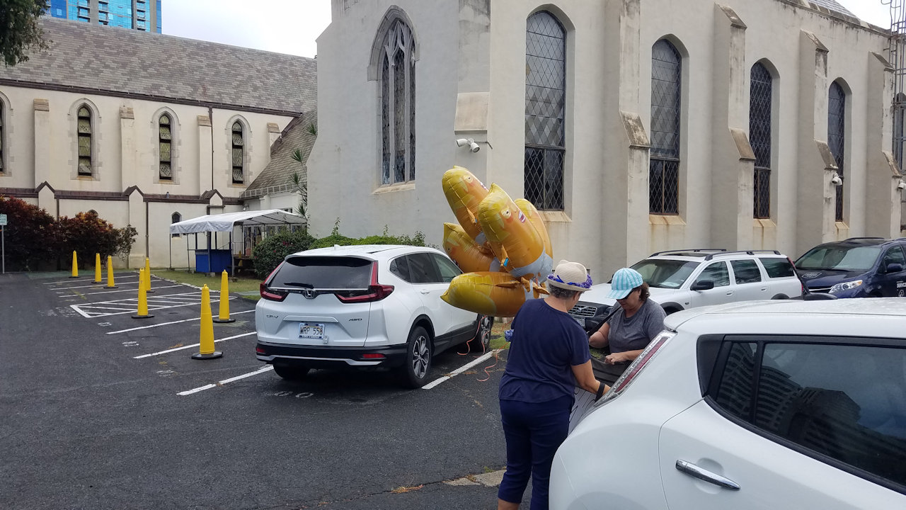 We parked in the Saint Andrews Church parking lot and got the ballons out of the back.