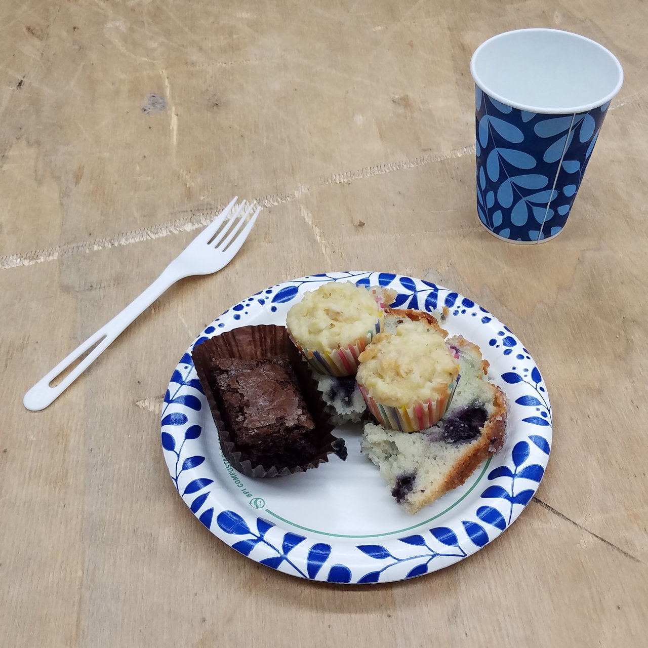 Having eaten dinner at home before I left, I had a dessert plate of brownie, blueberry cake, and mini-muffins.