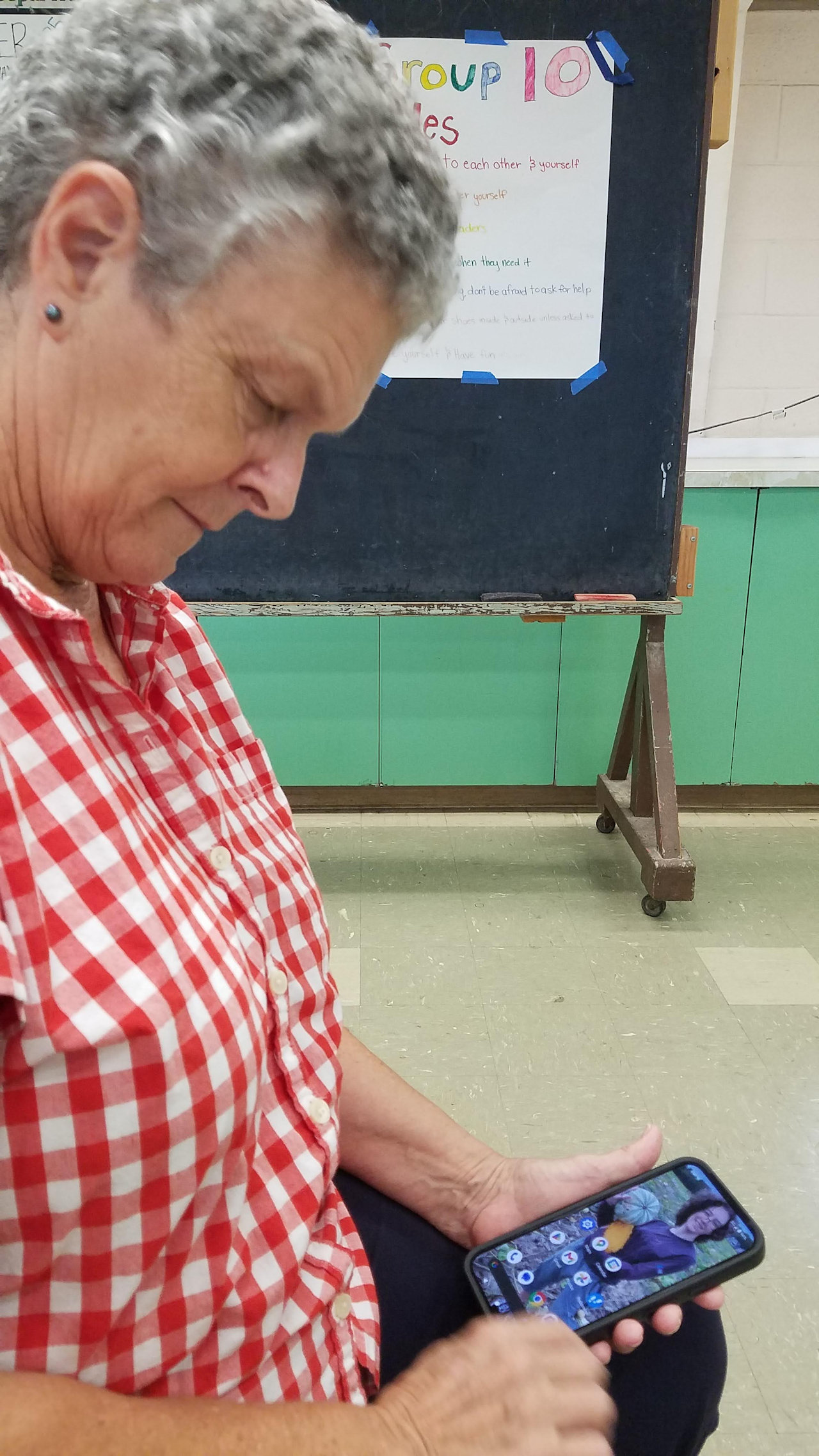 Andrea waiting for the meeting to start.