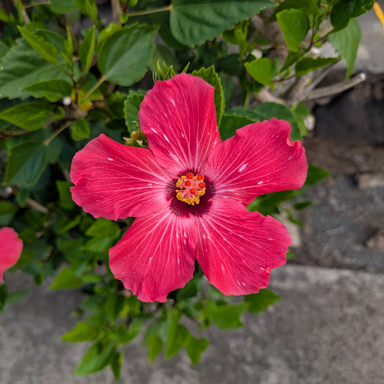 Andrea photographed this red hibiscus flower on her mid-morning walk Monday.