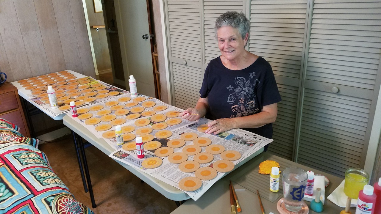 In the afternoon Andrea worked on the sun coaster party favors for our upcoming Summer Solstice Soirée.