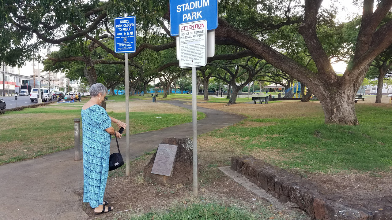She photographed a wall mural at the Ewa end of the park.