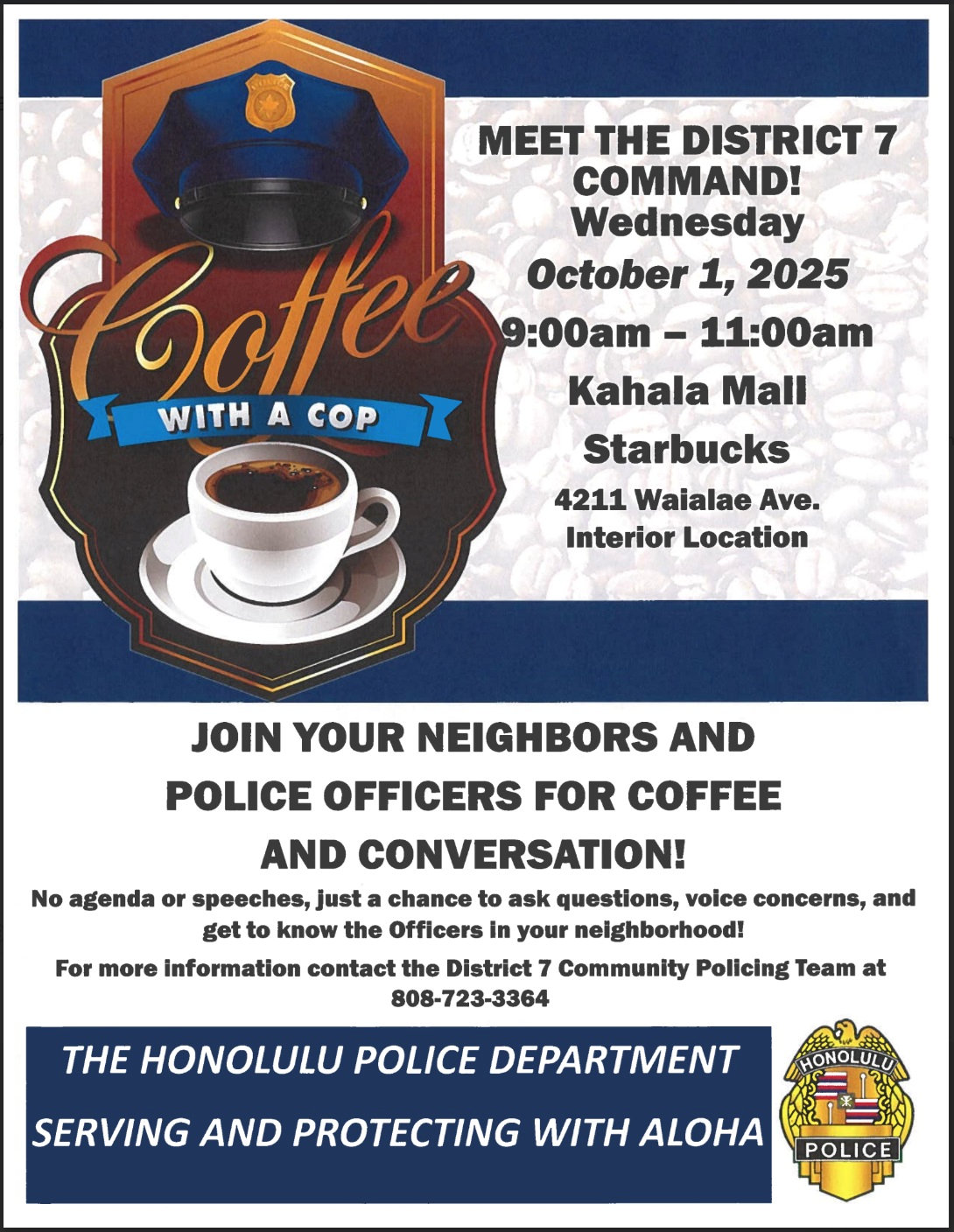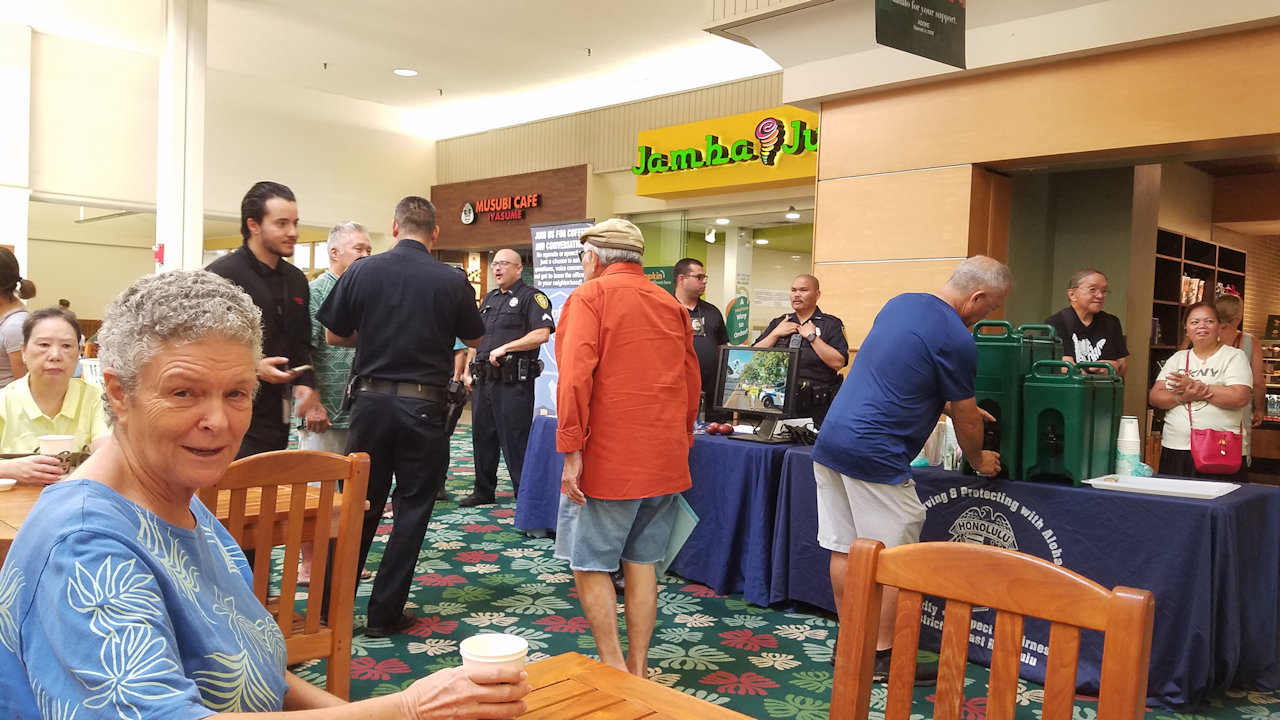 Andrea and I went to the October 1st Coffee with a Cop at Kahala Mall on a Wednesday morning.