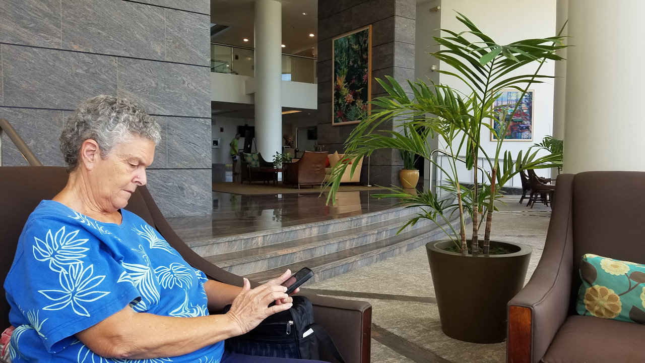 I went with Andrea to the eye doctor in the afternoon. We waited for the office to open in the lobby of the Nauru Tower condo.