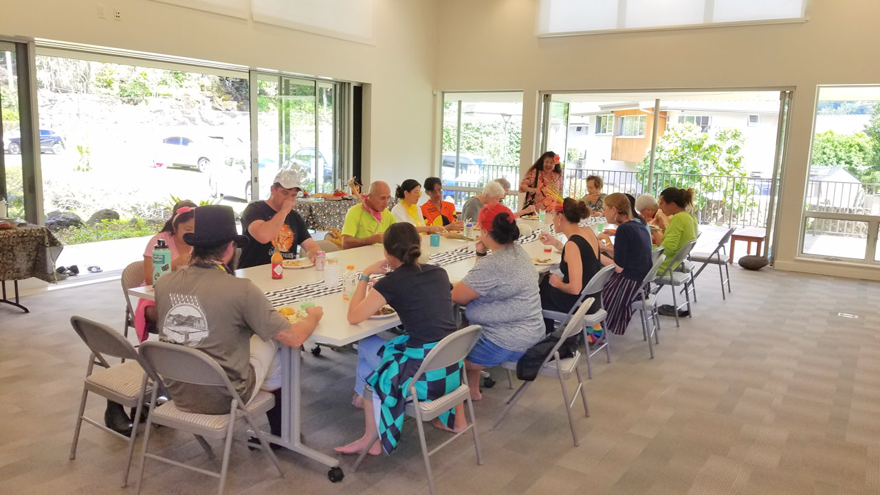 Halau members came by to chat.