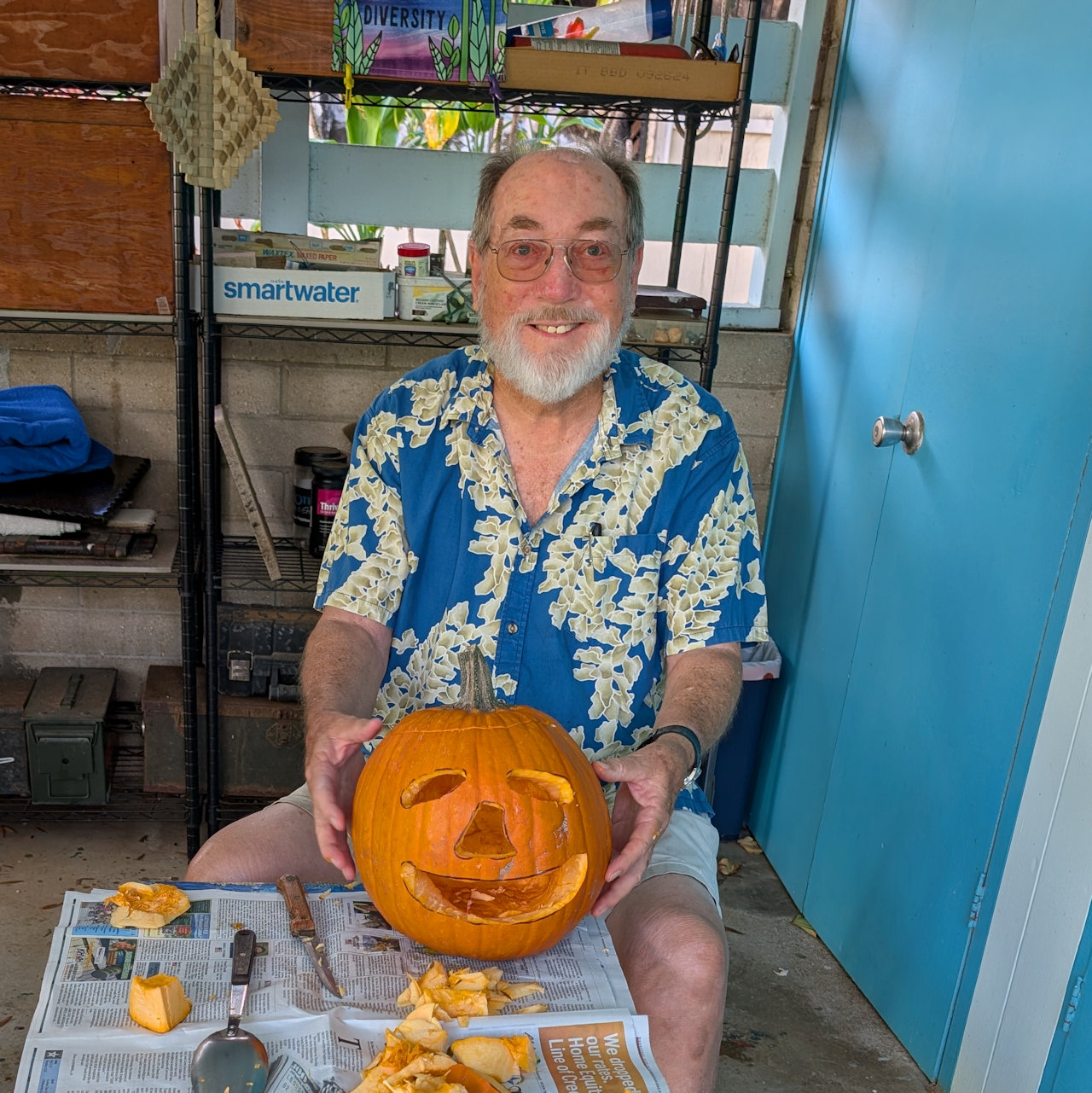 In the afternoon I carved the pumpkin to make a smiling jack-o-lantern.