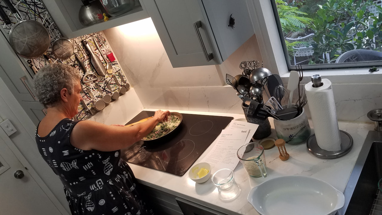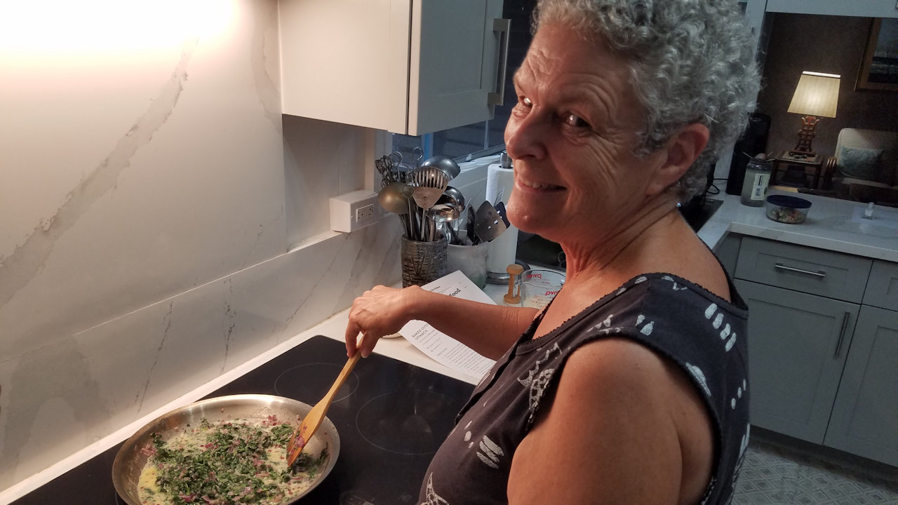 Andrea at the induction cooktop.