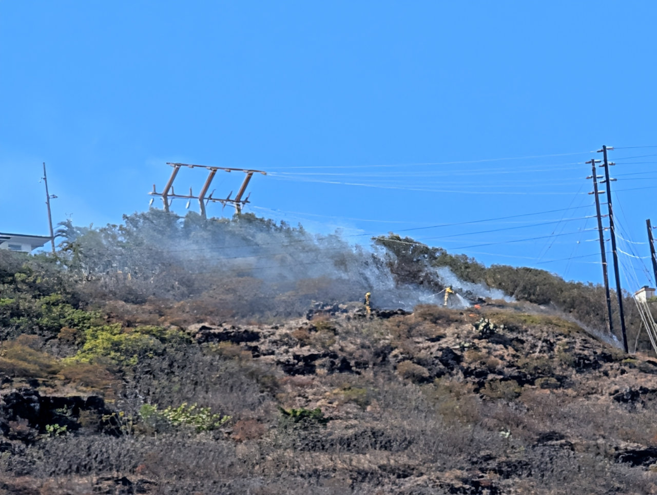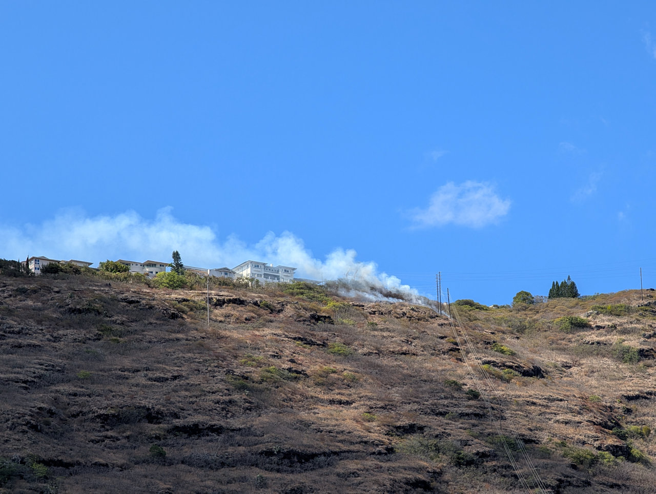 There was a fire on the upper western ridge by the power lines coming down into the Wailupe Valley on Sunday afternoon, October 12.