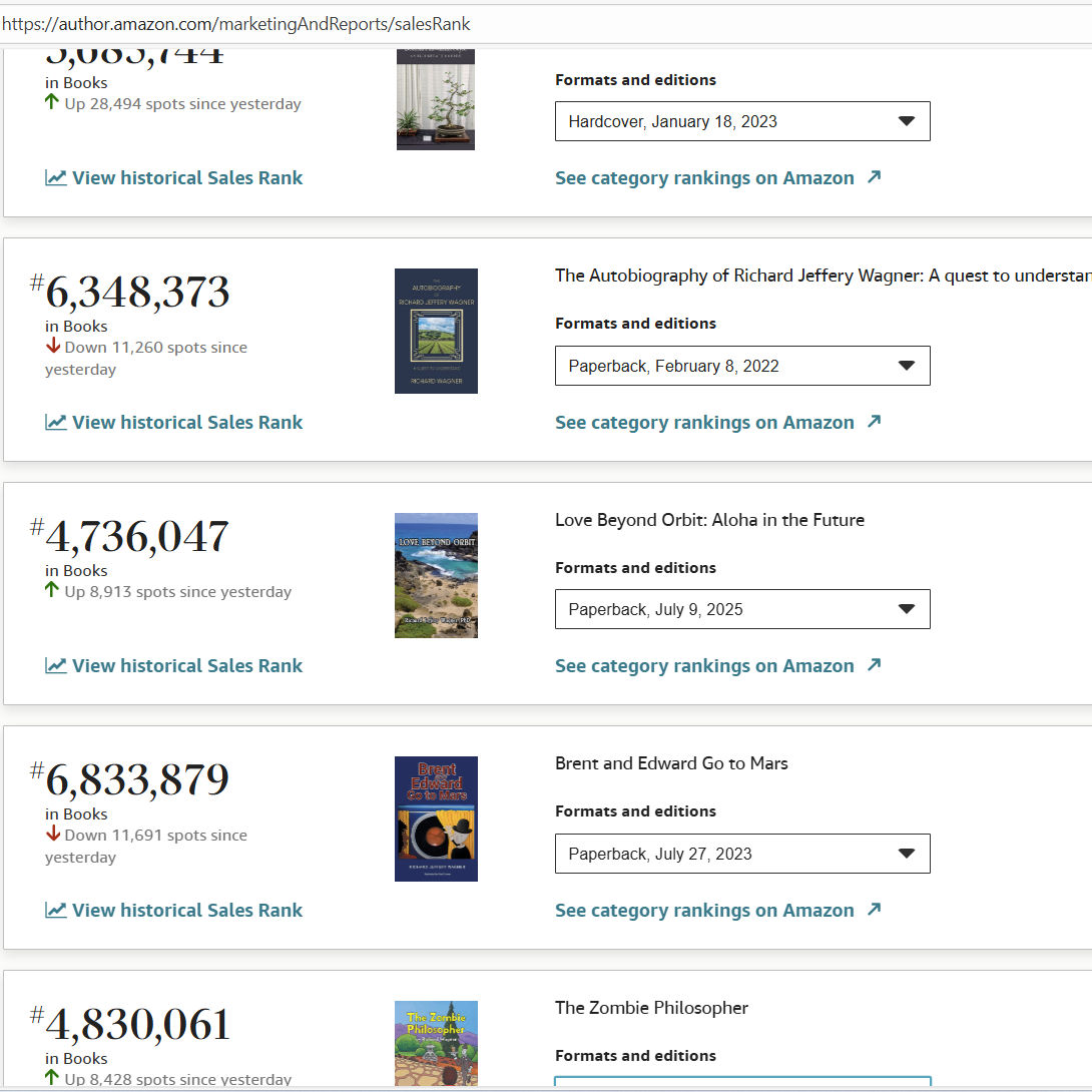 Friday morning I had three of my five books with an improved sales rank.