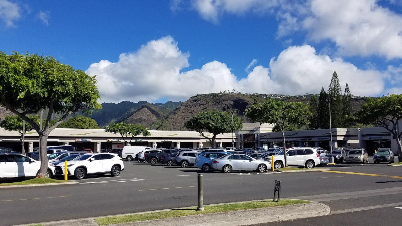 On the way home we stopped in the Aina Haina Shopping Center to deposit a check for selling five copies of Love Beyond Orbit