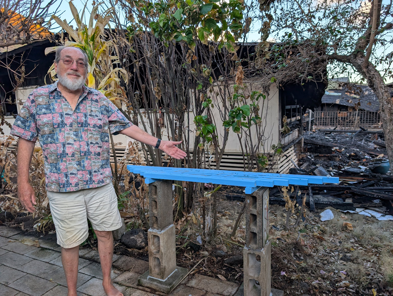 As the fire recovery continues, this image is another reminder of how close we came to losing everything, how lucky we were, and what good neighbors we have. That is our neighbor standing in our backyard with our garden hose, wetting down plants as fire rages through the backyard of the house where everything started. We were out front, having done what we could on the side of the house and not realizing that the backyard next door was burning so far back and toward our property. It was not until after we were allowed back on our property that we realized the fire had reached the base of our garden shed in backyard.