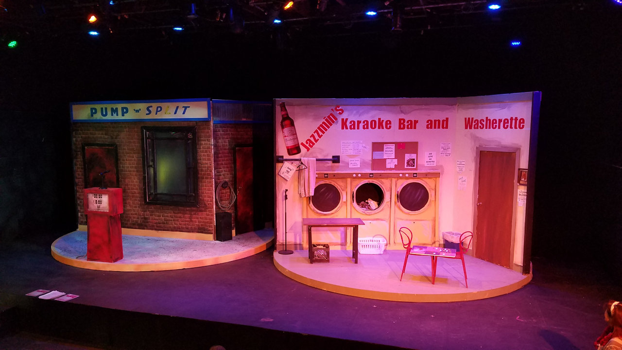 The stage set. The two constructions rotate for four sets altogether.