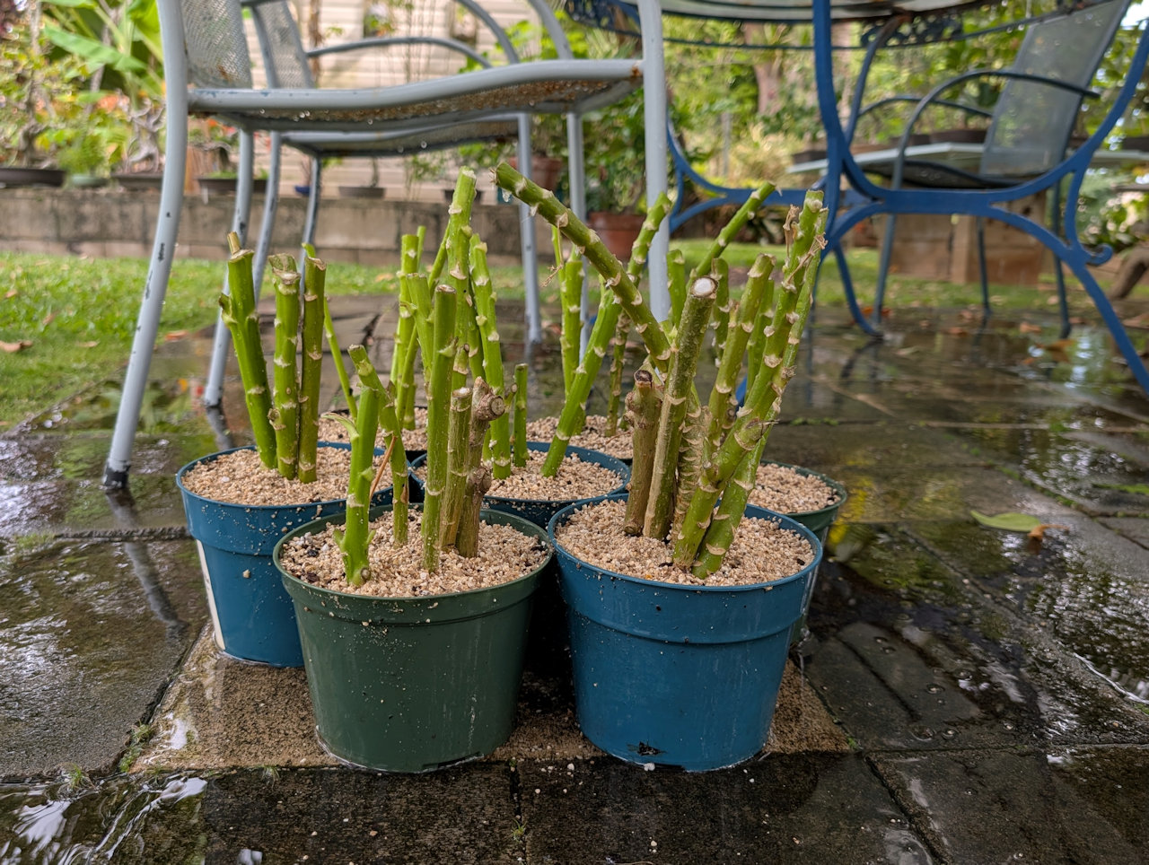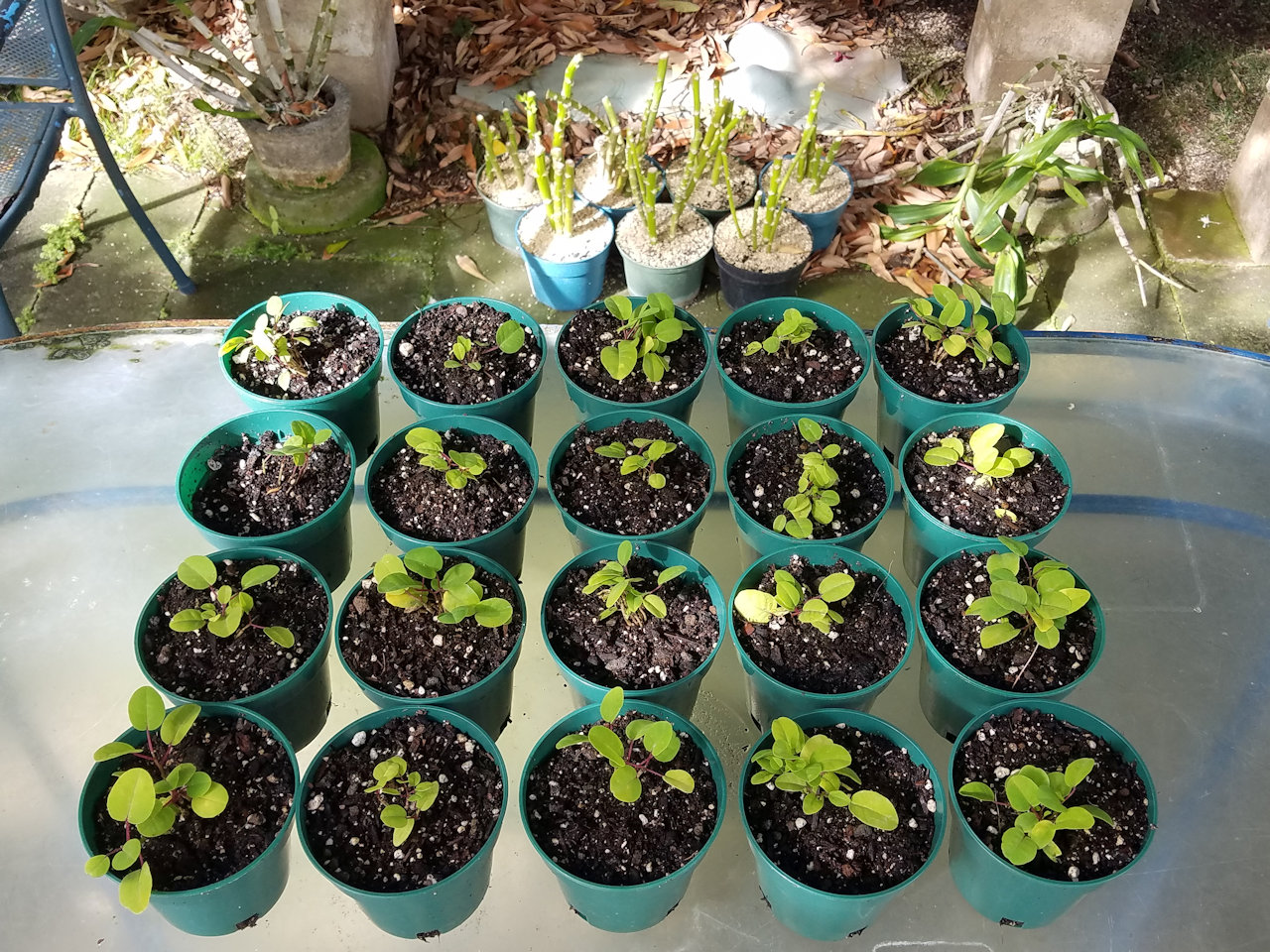 Andrea cut pieces of naupaka to root as a green hedge between our properties.