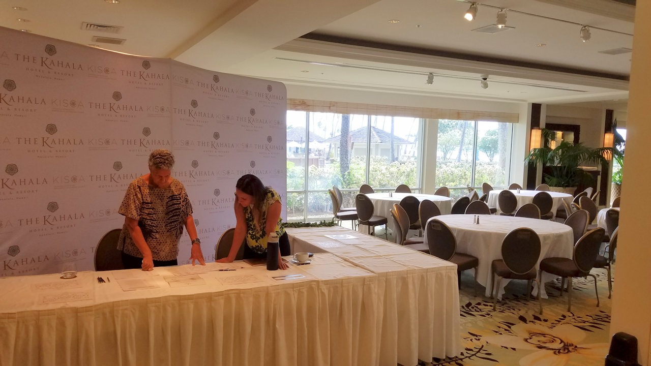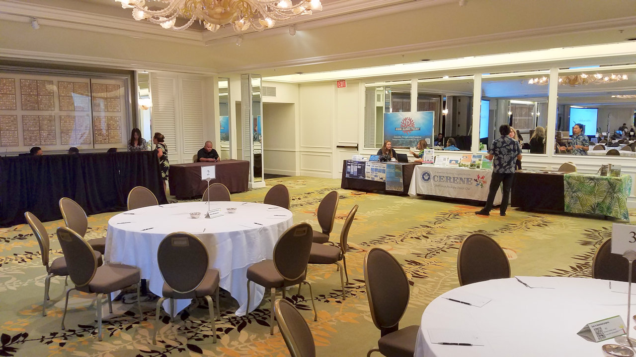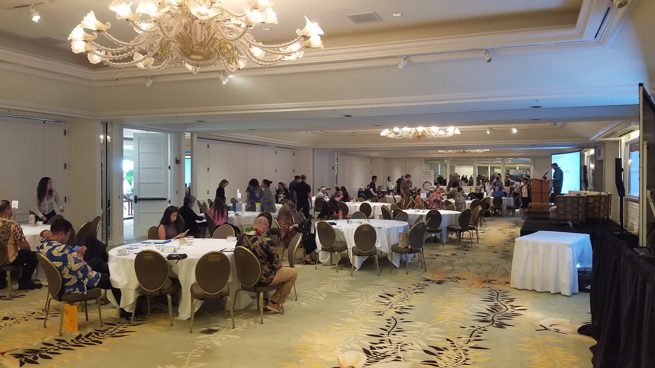 Exhibitors had displays at both mirrored ends of the Maile Ballroom.