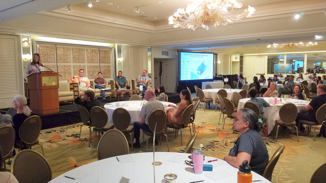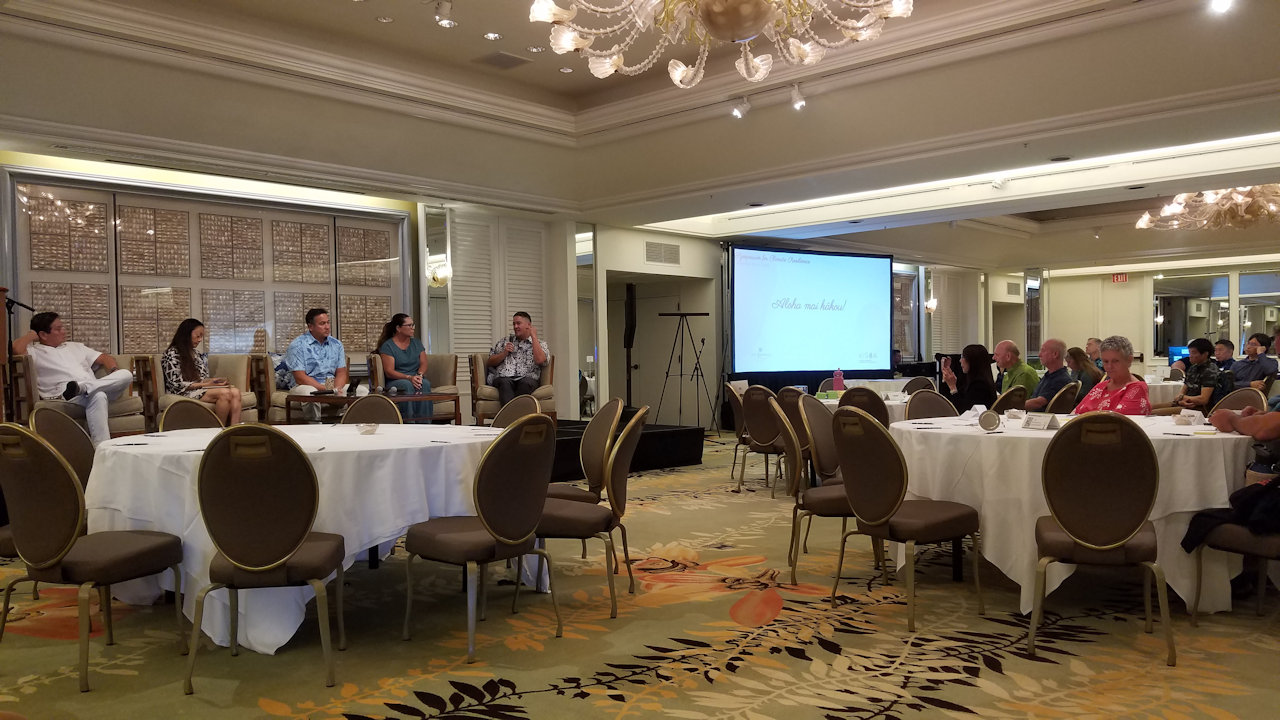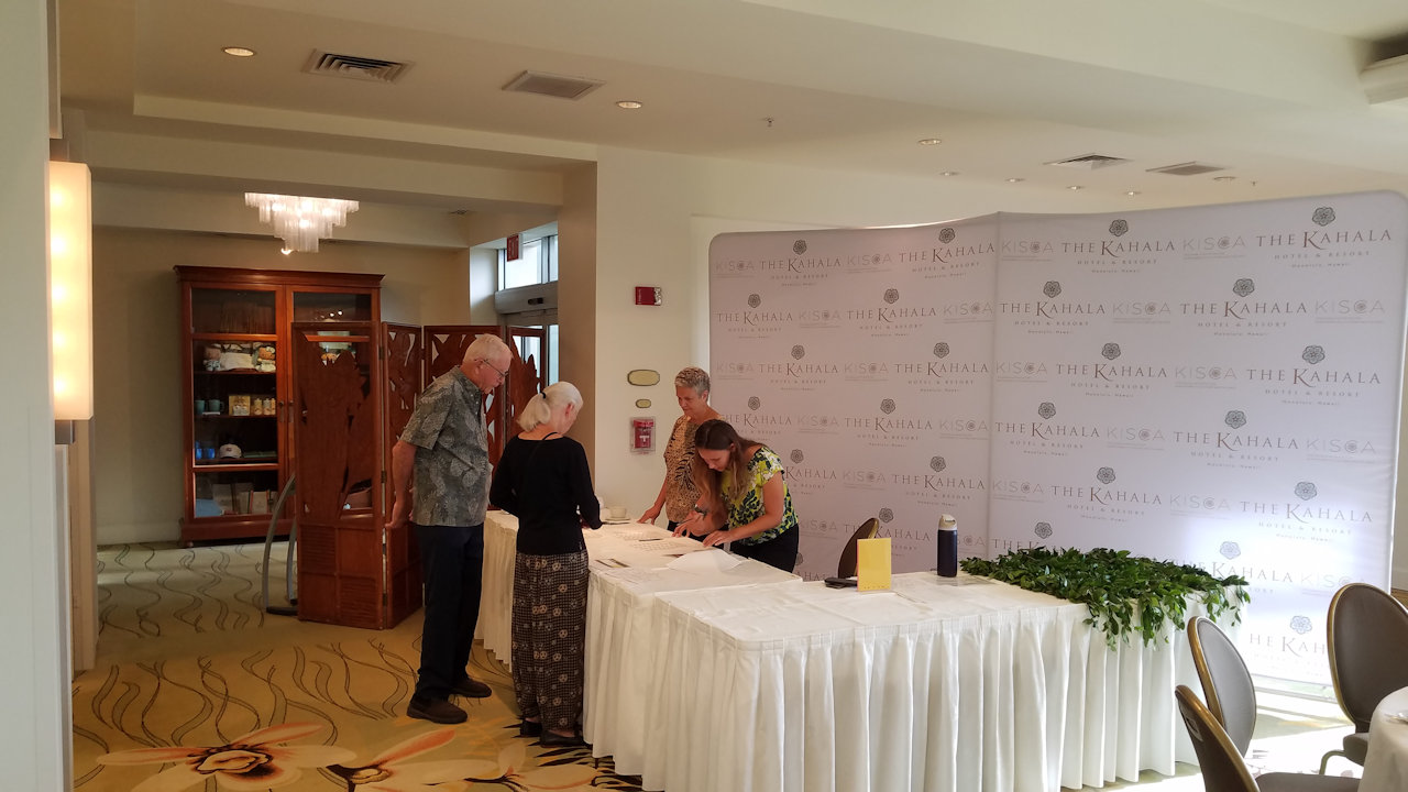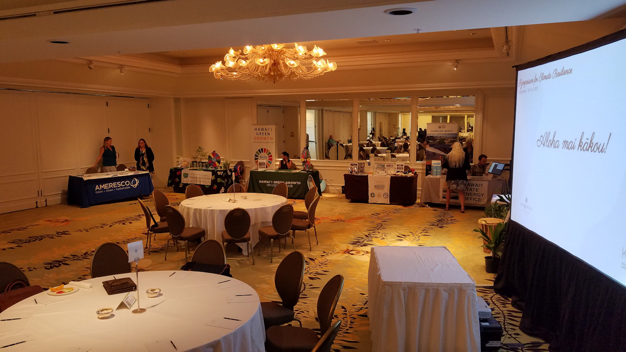 Exhibitors had displays at both mirrored ends of the Maile Ballroom.