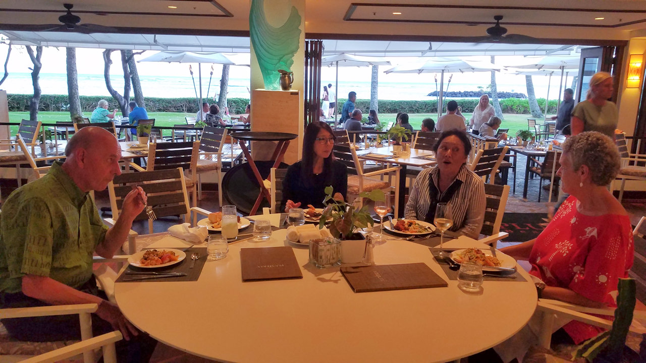 Mark and Aloha invited Chris, Andrea, and me to dinner afterward at the Plumeria Beach House restaurant. We had cocktails and a buffet dinner.