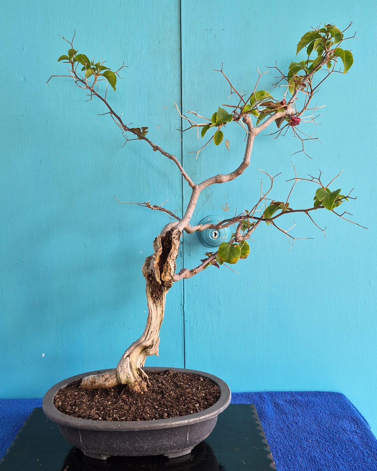This bougainvillea in the bunjin style has finished blooming and is ready for the next phase of its existence.