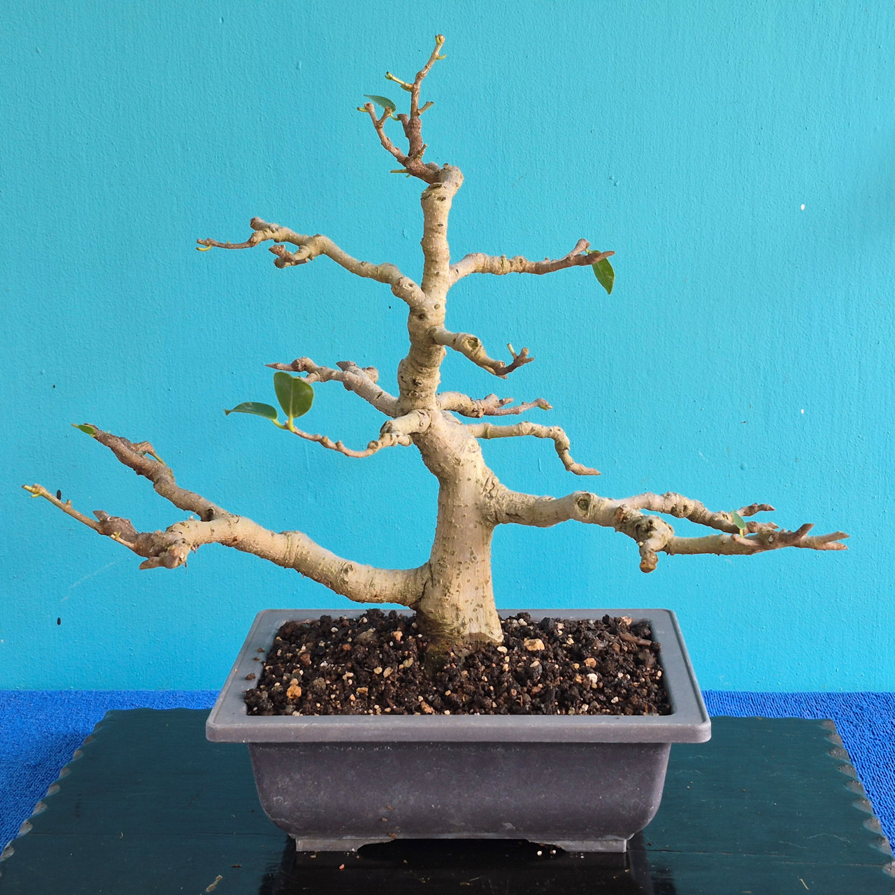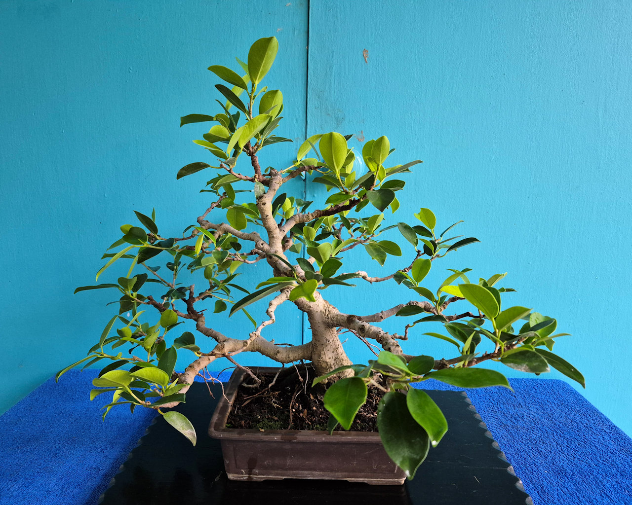 The banyan is well developed but it needs some work on the roots, so I will prune it and repot it into a larger growing pot.