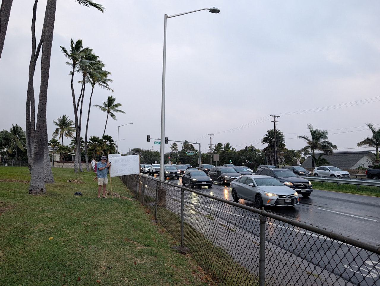 My sign said HEALTHCARE NOT WARFARE.