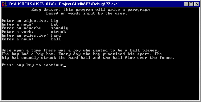 The program should then use those input words, along with other words coded into the program,