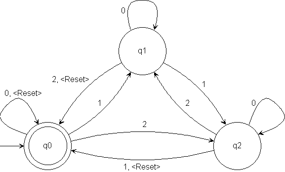 M5 accepts strings over {0, 1, 2, <Reset>} that sum to 0 modulo 3 or strings ending in <Reset>.
