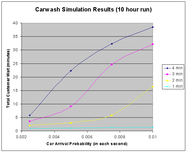 Carwash simulation results.